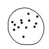 | 目を描く! で、目を描きます。 やっぱりテキトーに点を打てばいいだけなので特に難しくはありませんが、輪郭からはみ出してたりいっぱいあるとすでに目には見えないので注意が必要です。 |